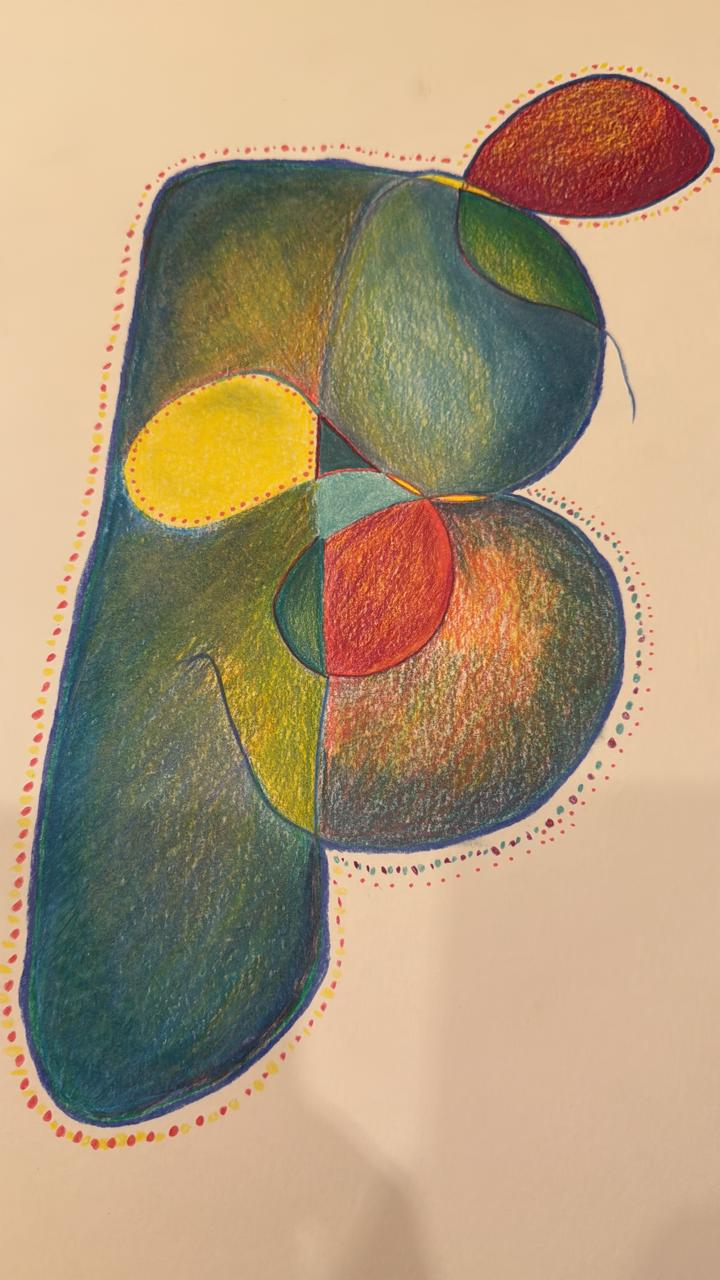 El color actúa como energía: no delimita, sino que circula, tensiona y articula la composición. Las transiciones cromáticas generan una sensación de movimiento continuo, como si la forma estuviera en permanente ajuste.