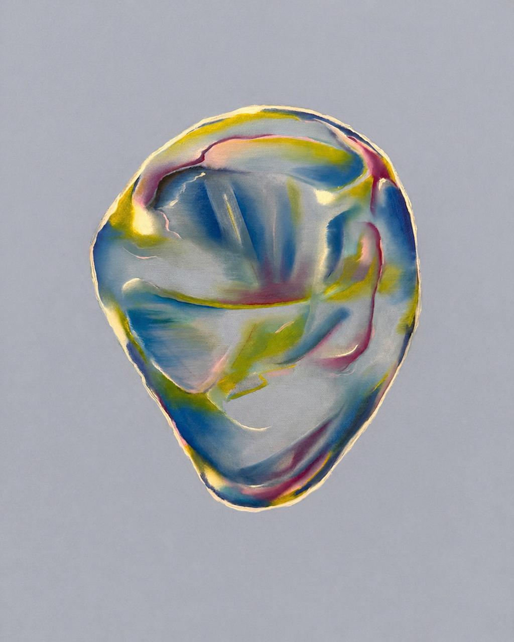 La superficie, plegada y contenida, sugiere un núcleo que se contrae y se expande al mismo tiempo. El color, lejos de definir, se desplaza, se mezcla y se tensiona, generando una sensación de movimiento interno.